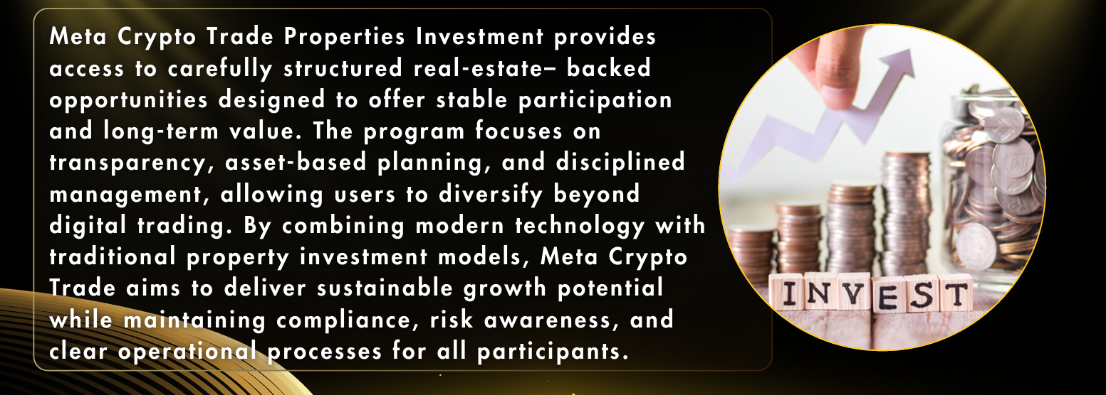 2. Note: Property investment plan offering up to 5% monthly return potential, based on project performance, market conditions, and company policies, with capital involvement subject to terms, risks, and timelines.